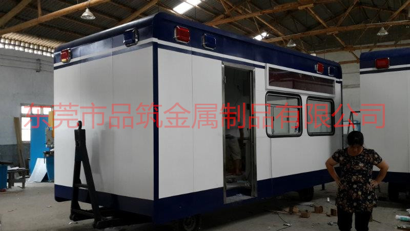 广州市公安局荔湾区分局移动警务室主要结构为钢结构焊接成型,室内及室外均采用镀锌钢板机加工成型,钢结构制作的移动警务室就找钟经理订购:13725886177,关于移动警务室最新款式可以到东莞市品筑金属制品有限公司厂家考察样板。