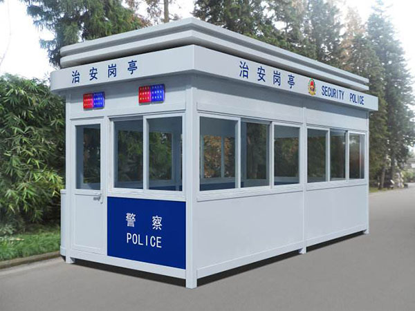 2、警务亭四边采用厚镀锌板,表面喷涂汽车金属漆。