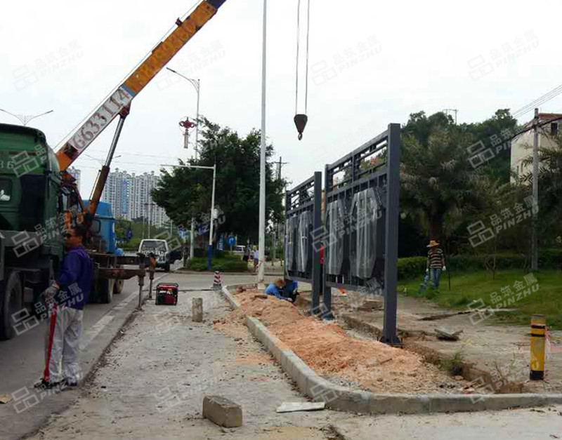惠州候车亭生产厂家东莞市品筑金属制品有限公司现场施工照片: