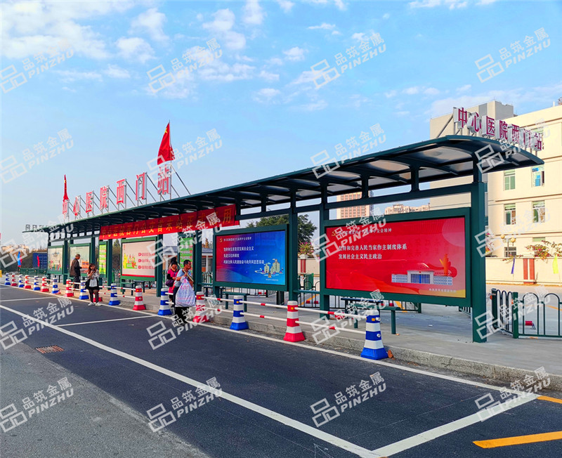 江门公交候车亭材料说明:候车亭顶棚材料:304不锈钢板。候车亭顶弓材料:采用3mm钢板激光切割焊接成型。候车亭立柱:150*150*3mm碳钢方柱。公交候车亭灯箱配置为三部分:内胆:采用1.5mm镀锌钢板钣金制作成型外盖:采用双层1.2mm镀锌钢板钣金制作成型,玻璃为8mm钢化玻璃。电器:节能灯管或LED灯、漏电开关、时空开关、滚动装置。