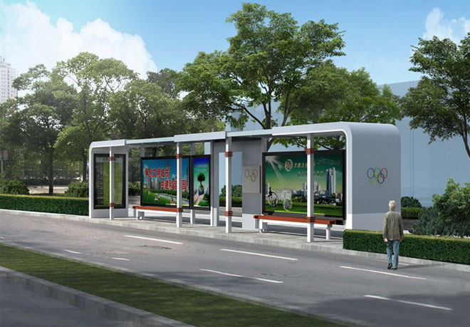 海南海口公交候车亭总长:18米*1.6*2.8米,候车亭立柱采用3mm钢板机加工成型,灯箱材料及顶部结构采用1.5mm镀锌钢板钣金加工成型,顶棚采用4.5mmPC耐力板材料制作。关于海口公交候车亭制作找东莞市品筑金属制品有限公司。