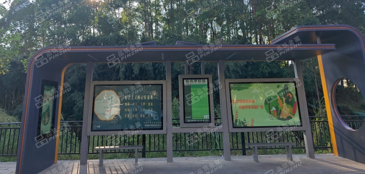 增城新款候车亭总长8米,现已投入使用了,由东莞市品筑金属候车亭厂家负责承建,请观赏以下生产效果图: