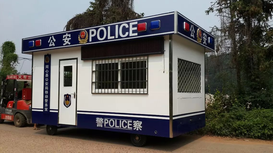 岗亭在现在的城市各个角落都会有很多,而且岗亭样式千奇百怪,在近几年一线城市的街头出现越来越多的可移动的警务岗亭,这种可移动警务岗亭有可以直接开走的,也有需要拖车拖走的,但是这种岗亭的装备跟其它街头的治安岗亭区别还是很大,这可移动警务岗亭就像一个全副武装的警察,因为表面附带各种警察字样的标识,无不让违法犯罪分子害怕,这样的可移动警务岗亭使用方便吗?内部会有什么设施呢?下面来听听广东专业生产移动警务岗亭厂家东莞市品筑金属制品有限公司给您详细介绍一下: