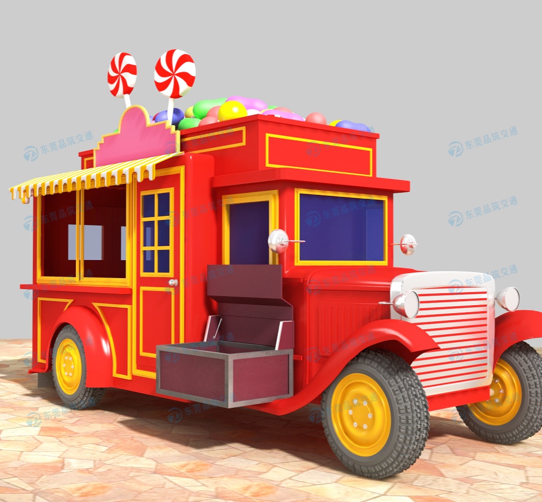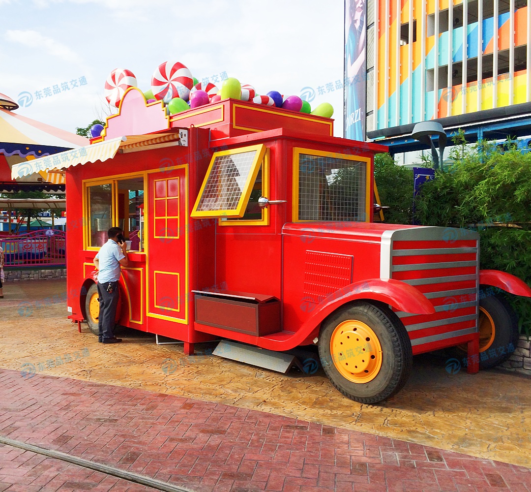 在2015年4月份东莞市品筑智能交通设施有限公司生产了第一辆卡车售货亭,此售货亭主要是仿照老爷车款式设计制作,也是此主题乐园最中心,最重要的售货亭之一,款式吸引不少游客纷纷合影;